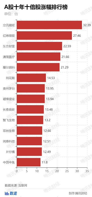 01、最近十年,A股市場誕生了哪些十倍股?A股市場4千多家上市公司,其中上市年限超過十年的公司有1968家,剔除掉借殼重組的上市公司,最近十年靠內(nèi)生增長獲得十倍收益的上市公司僅有14家。