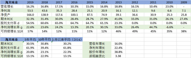 調(diào)味品龍頭企業(yè)海天味業(yè),上市以來一直保持穩(wěn)定高ROE,平均達(dá)到30.2%,原因在于其高成長高分紅模式。